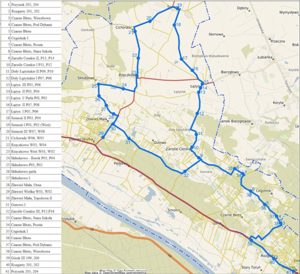 Kierunek → (przez Łążyn) Toruń