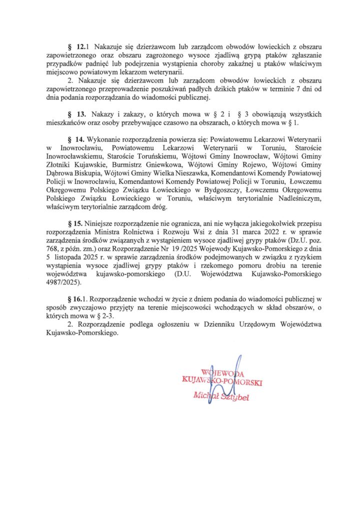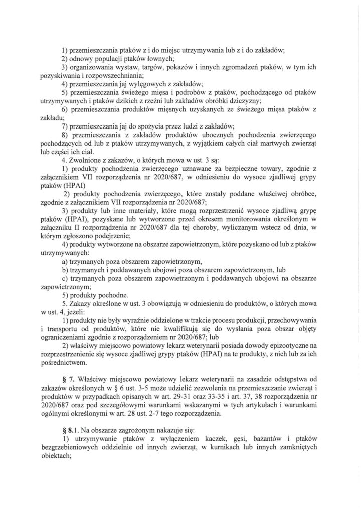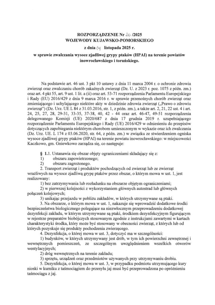 w sprawie zwalczania wysoce zjadliwej grypy ptaków (HP AI) na terenie powiatów
