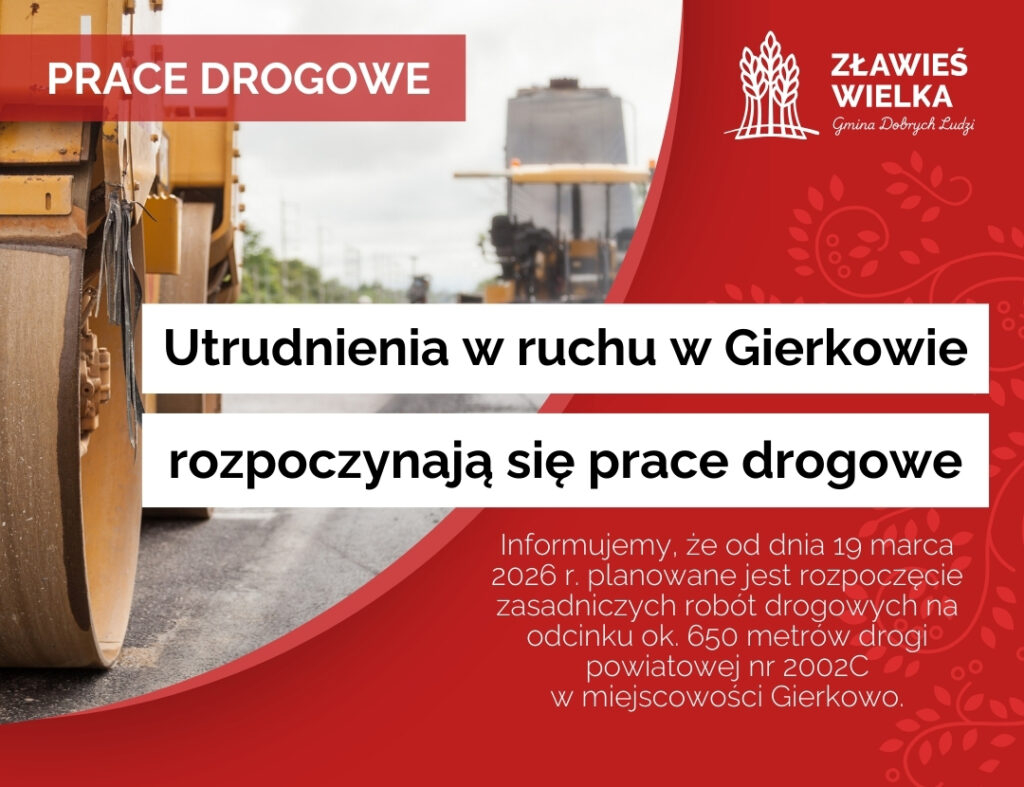 Szczegóły na stronie Urzędu Gminy: Utrudnienia w ruchu w Gierkowie – rozpoczynają się prace drogowe.